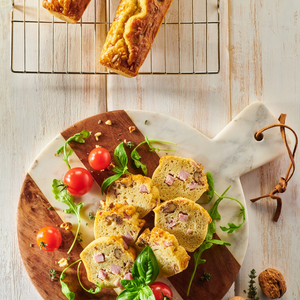 Make five different cake recipes in the same mold with the Flexipan® 5 Long Cake Mold. Check out our savory ham and walnut cake recipe.