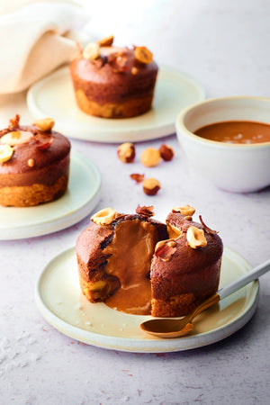 Try our brookie muffins, fudgy chocolate delights with a gooey chocolate center.