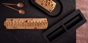 The smart Flexipan® Log Mold is the perfect for making two different dishes in the same mold, for example, a vanilla hazelnut Yule log on one side and a raspberry mascarpone log on the other.