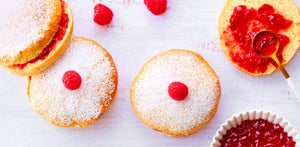 Enjoy these fluffy oven-baked fritters, topped with raspberry compote, for a guilt-free fruity treat.