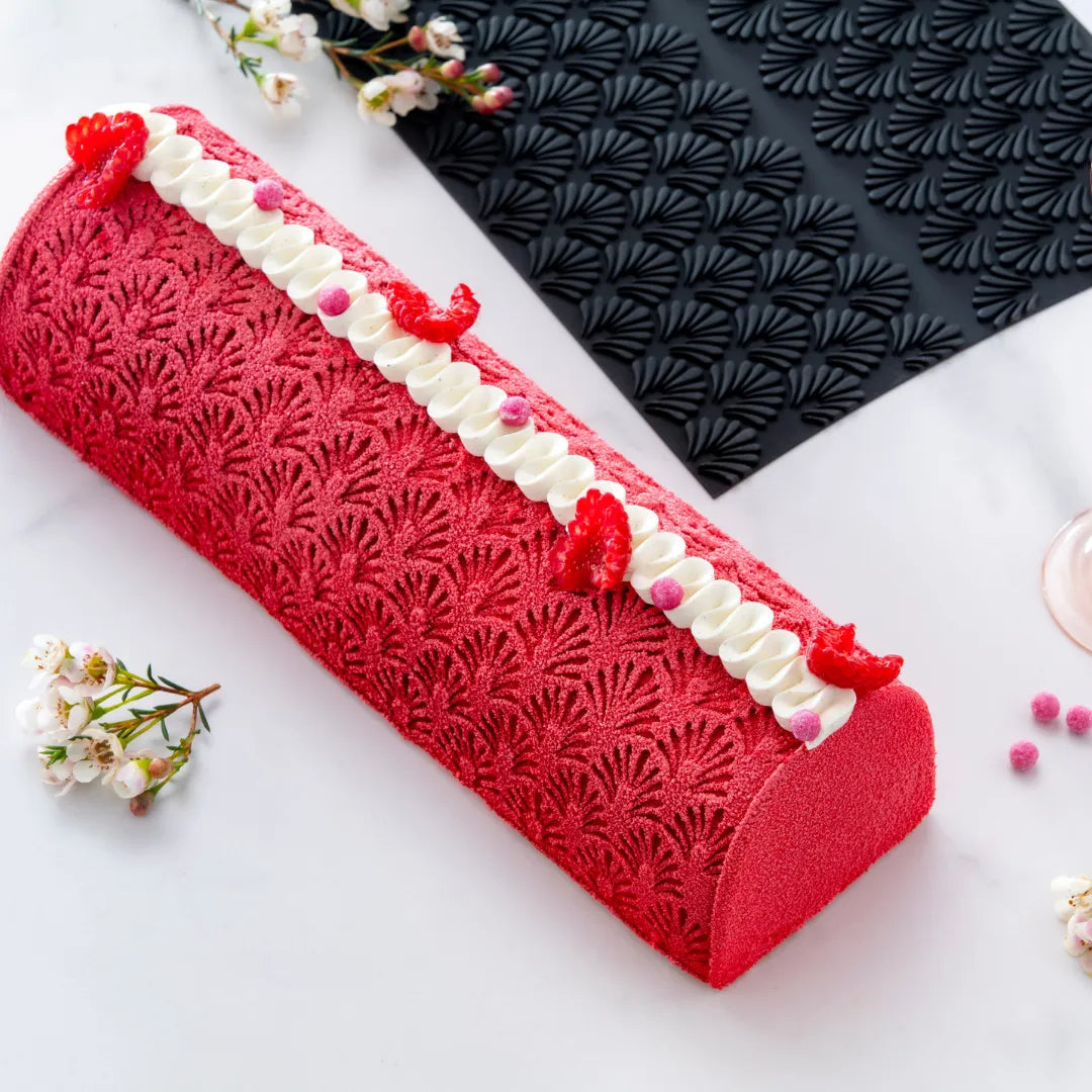 Sublimez vos créations pâtissières de fin d’année avec le Tapis Bûche Écailles Flexipan®, l’accessoire idéal pour réaliser une bûche élégante, originale et riche en texture. Conçu pour s’intégrer parfaitement dans le Moule Bûche Flexipan®, ce tapis offre un motif écaillé raffiné qui transforme instantanément votre dessert en une véritable création d’exception, à la fois contemporaine et harmonieuse.