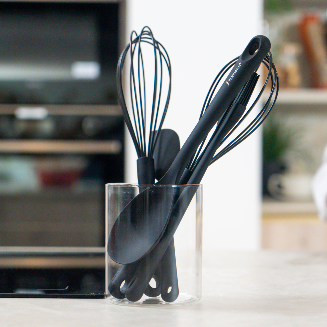 • Matériau : Silicone alimentaire (maryse et pinceau), acier inoxydable (fouet, fourchette et cuillère)