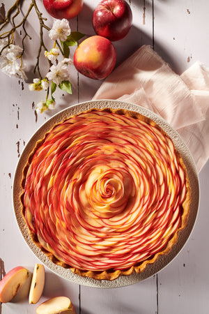 Scoprite questa raffinata crostata, dove sottili fette di mela sono disposte a rosetta su una base di pasta croccante, per un dessert tanto bello quanto gustoso.