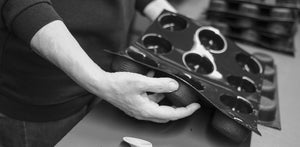 Onze medewerkers hebben niet alleen zeer deskundige handen, maar beschikken ook over een uniek savoir-faire. Van het snijden van het doek tot het weken, van het borstelen tot het vormgieten, van het storten tot de kwaliteitscontrole en het bakken: elk van deze deskundige handen kent zijn of haar taak door en door.