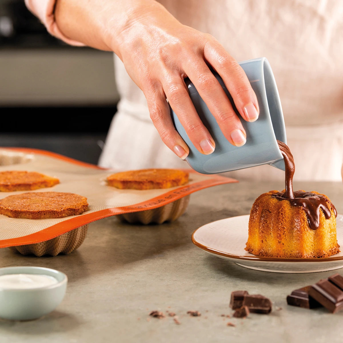 Le silicone antiadhésif associé à la fibre de verre souple assure une grande facilité de démoulage et permet de conserver la forme exacte de vos mini-cakes. Vous pouvez ainsi ajouter des touches finales comme un glaçage au chocolat, un coulis de fruits ou un peu de chantilly, sans risque d’abîmer vos pâtisseries.